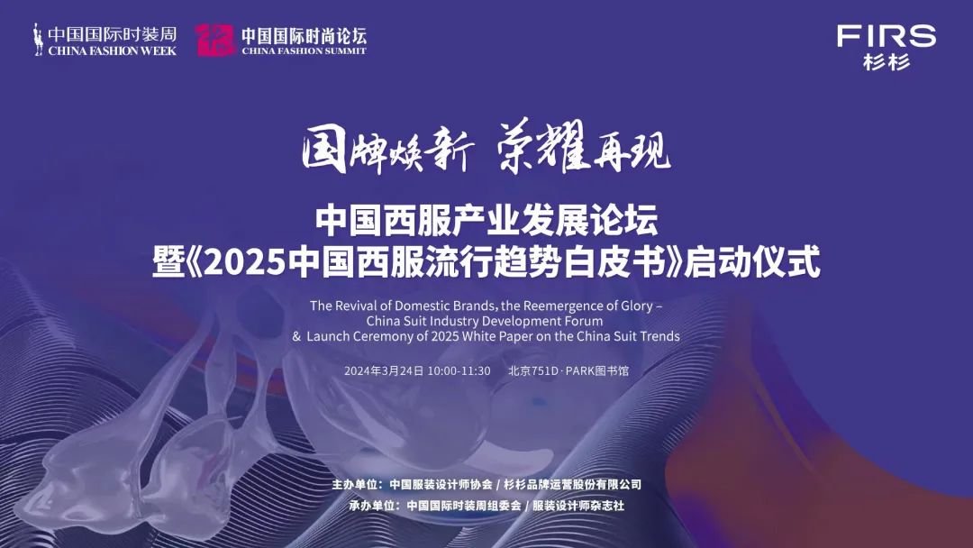 作为本届中国国际时装周的重点活动之一,中国西服产业发展论坛于3月24日在京召开。此次论坛不仅云集了设计、产业、营销等各界专家,共同探讨中国西服品牌的当代发展和焕新策略,而且国内首家上市服企杉杉股份还携手中国服装设计师协会,联合启动了《2025中国西服流行趋势白皮书》项目。