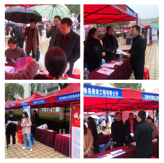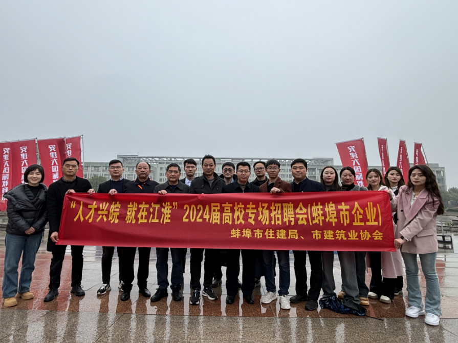 3月27日,由蚌埠市住房和城乡建设局副局长潘冰带队,市建筑业协会配合动员组织了六家蚌埠市建设企业参加在合肥市安徽建筑大学校区内由安徽省住房和城乡建设厅、安徽省教育厅联合举办的“人才兴皖 ‘就’在江淮”安徽省住房城乡建设行业2024届高校毕业生春季专场招聘会。