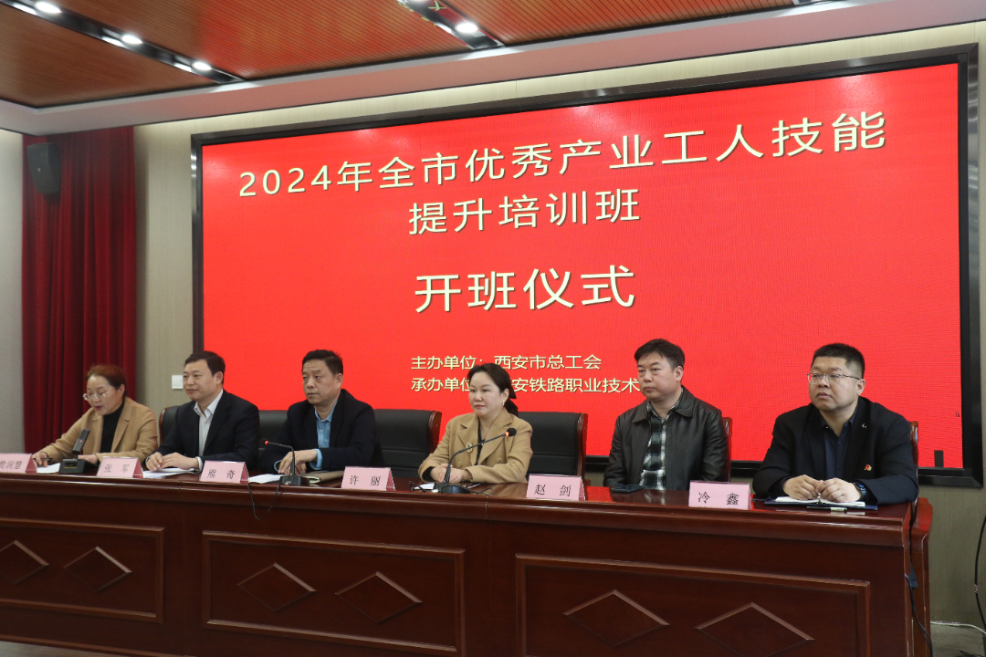 3月27日,2024年全市优秀产业工人技能提升培训班在临潼校区开班。市总工会经济技术劳动保护部部长、一级调研员许丽、副部长赵剑,学院副院长熊奇、临潼校区党总支书记兼主任张军、副主任冷鑫及全市100名优秀产业工人参加开班仪式。开班仪式由继续教育学院院长樊润慧主持。