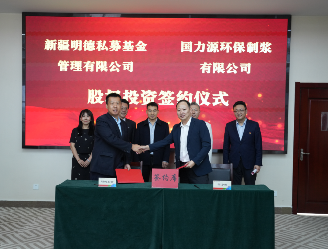 3月27日,石河子市国力源环保制浆有限公司(以下简称“国力源”)分别与新疆明德私募基金管理有限公司(以下简称“明德基金”)签署股权投资意向协议,与厦门国贸集团股份有限公司(以下简称“厦门国贸”)签署产品包销战略合作协议,共同助力秸秆综合利用产业发展。