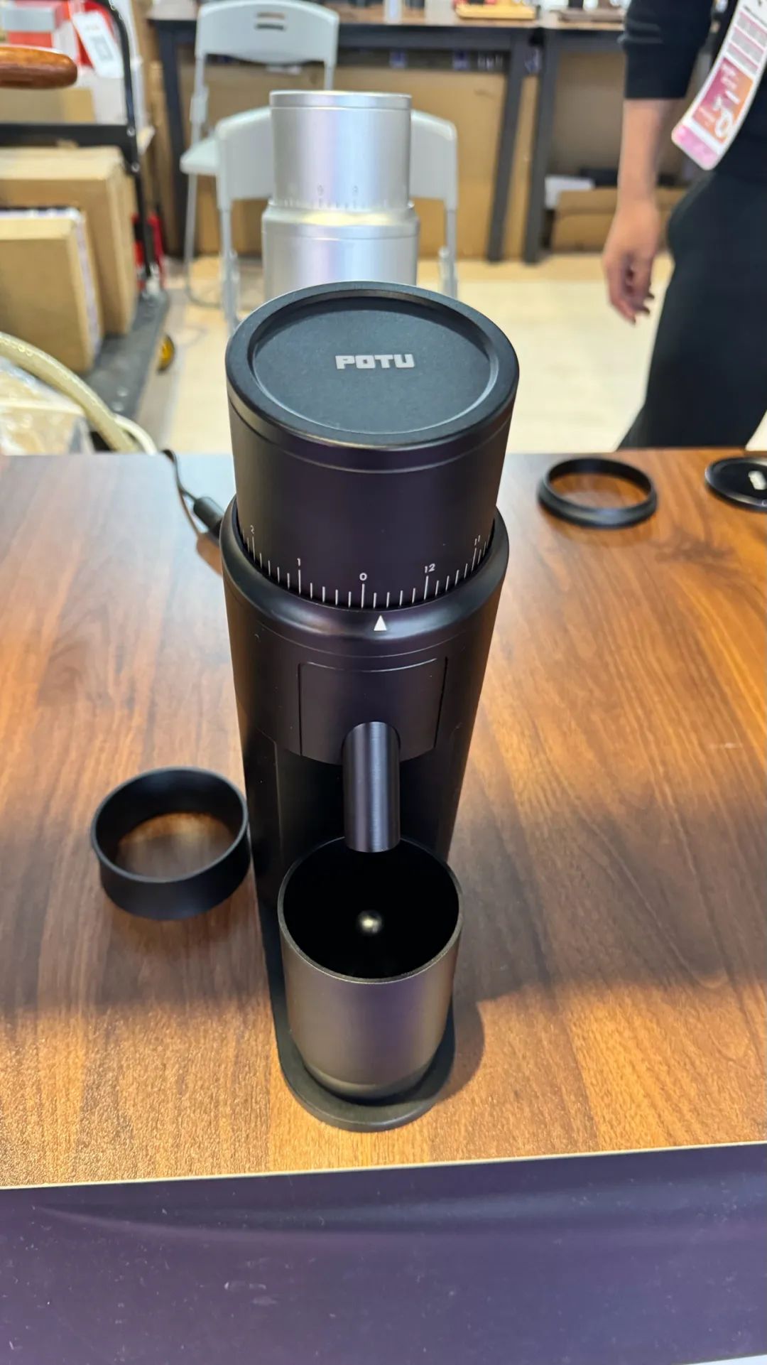 potu咖啡的63mm的锥刀,采用大电机。更好的兼容意式和手冲,尤其浅中烘的豆子,这几年soe的流行,由于烘焙机比较浅,如果电机比较小。