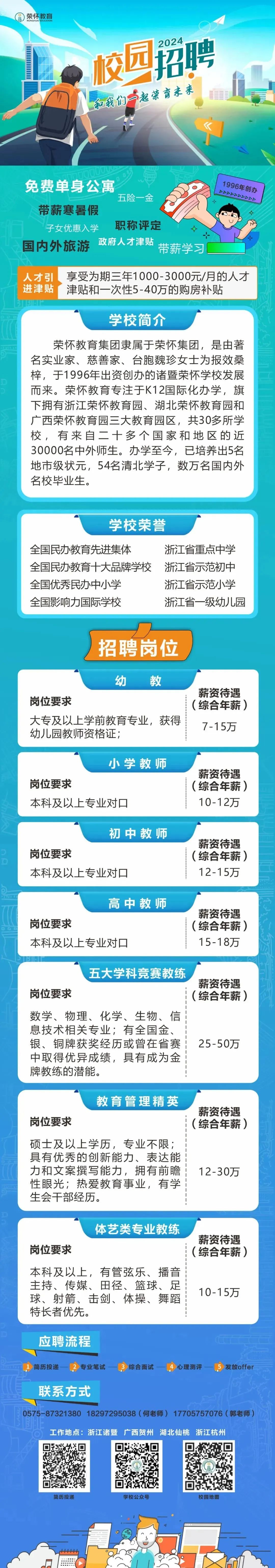 有教资的来!荣怀教育 行业龙头 浙江广西湖北 小学初中高中幼儿园教育管理