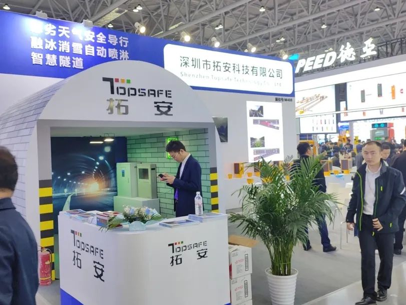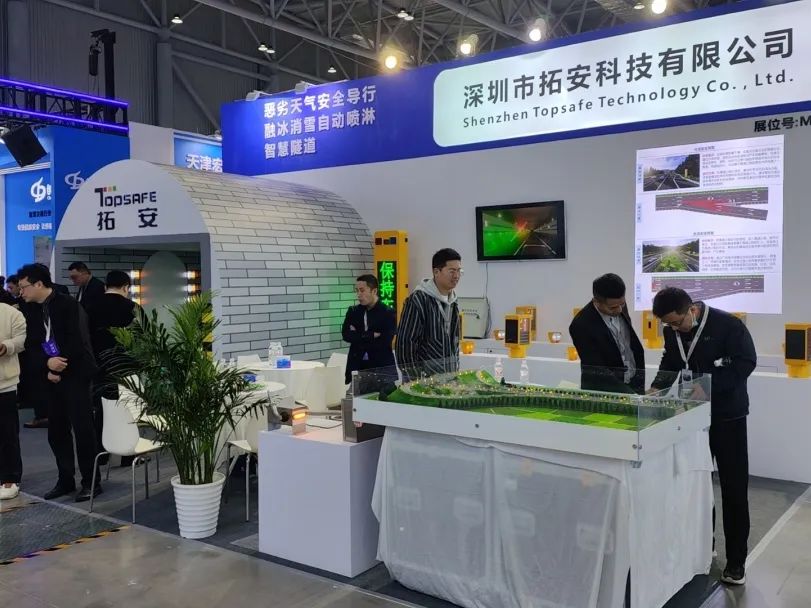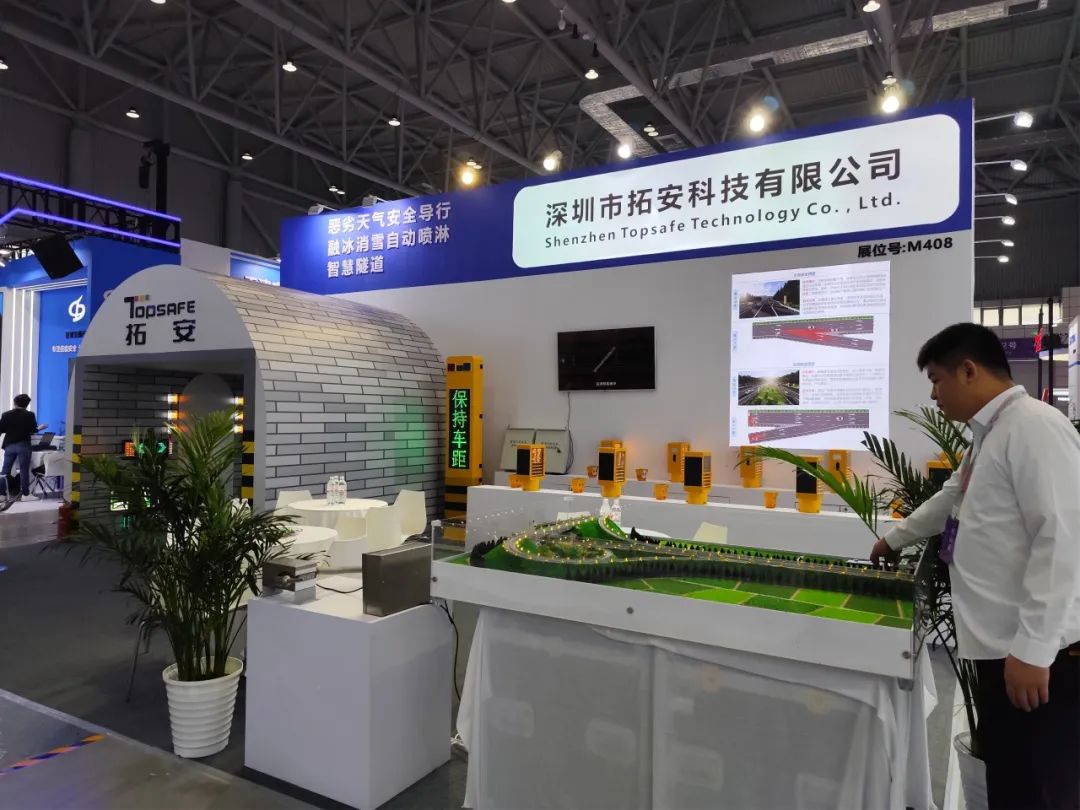 在展览会现场,拓安展出了包括新一代信息技术赋能的“智慧化准全天候安全行驶方案”、“特殊路段安全预警方案”、“智慧隧道”、“融冰除雪系统”。