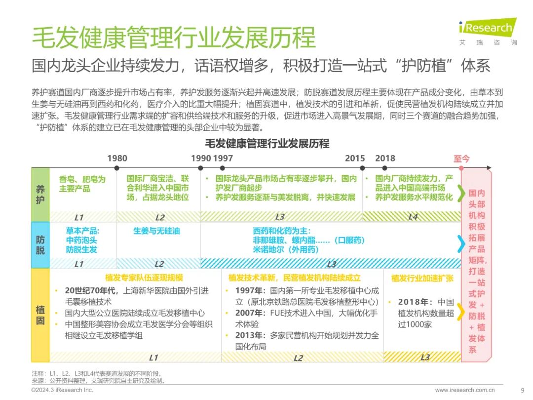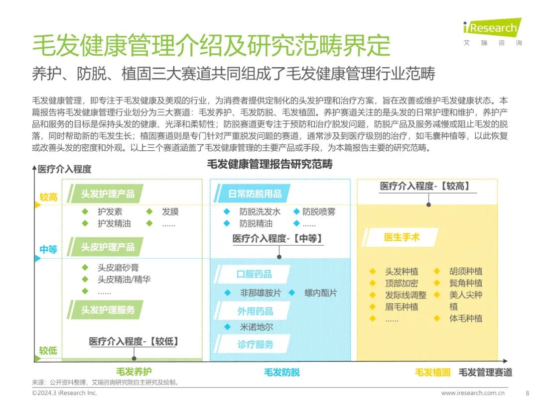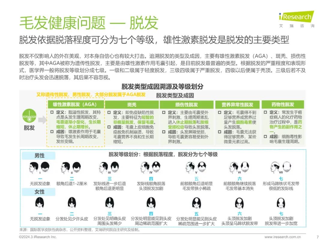 发展背景:中国脱发人群不断增多,防脱产品愈加丰富,医疗干预比重逐步提升;