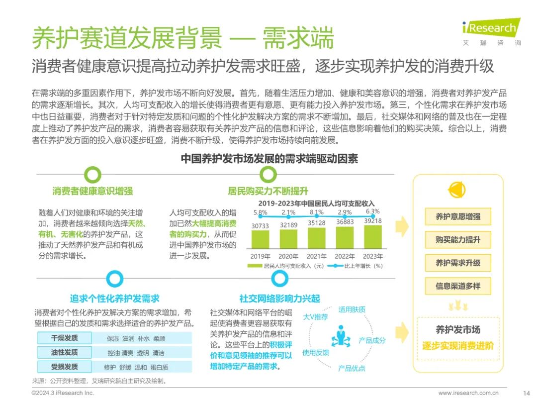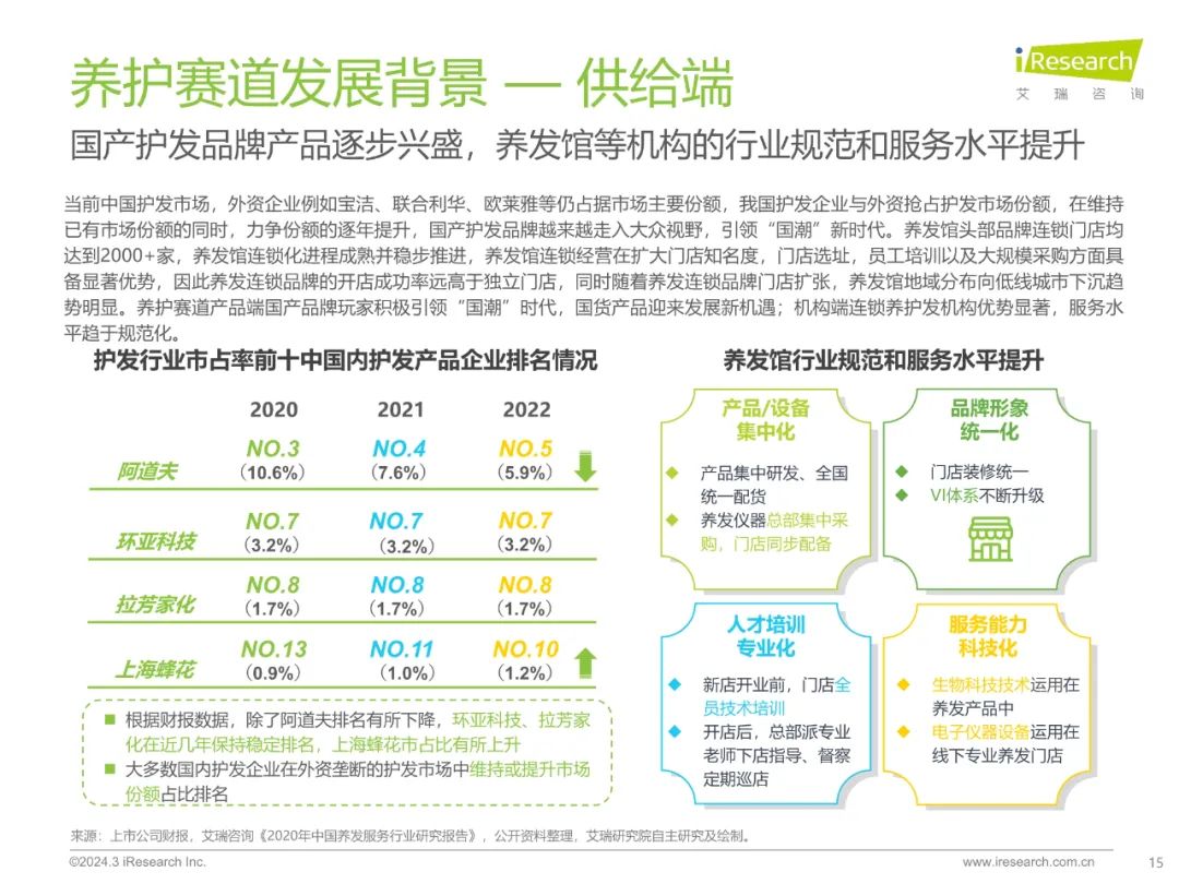 发展背景:消费者健康意识提高拉动养护发需求旺盛,国产品牌引领毛发养护产品“国潮”,养发馆等机构的行业规范和服务水平提升;