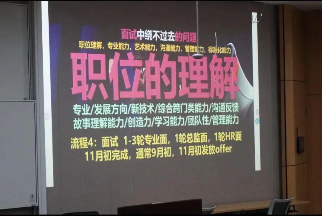 接着,后金鸽总监向我们介绍了同学们在校招中如何准备自己的简历与作品。后金鸽总监指出,近几年的国内在校毕业生竞争激烈,鼓励我们抓住机会参加校招,这是一个离大厂公司很近的机会。