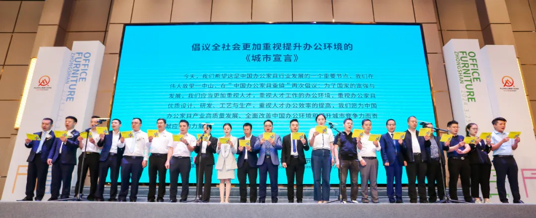 姚永红会长表示:自2017年“中国办公家具重镇”落户中山后,得到了各级党委、政府以及社会各界进一步的关注与支持,2023年初,中山市委经济会议提出要打造新时代中山“十大舰队”,夯实十大战略性支柱产业,其中包括大力发展以办公商用家具为主的美居产业集群。近年来,面对世界格局日趋复杂,应积极拥抱“一带一路”政策走出去。中山办公家具产业有良好的产业基础,有湾区之心的优越位置,未来我们要以更加坚定的信念和昂扬的斗志,坚信传统产业也有新质生产力!将团结全市办公家具行业力量,借力全国乃至全球资源,加快发展形成新质生产力,助力中山市“中国办公家具重镇”建设,助推中国办公家具产业高质量发展!