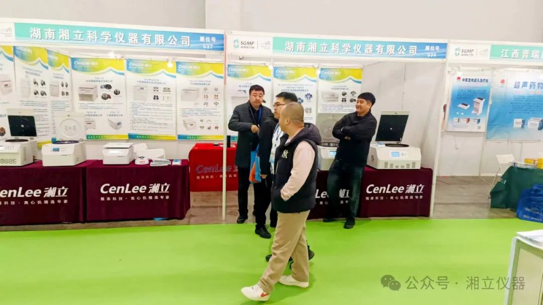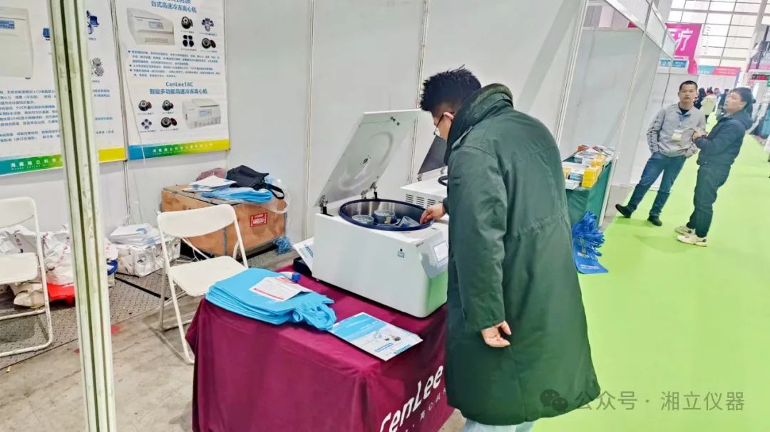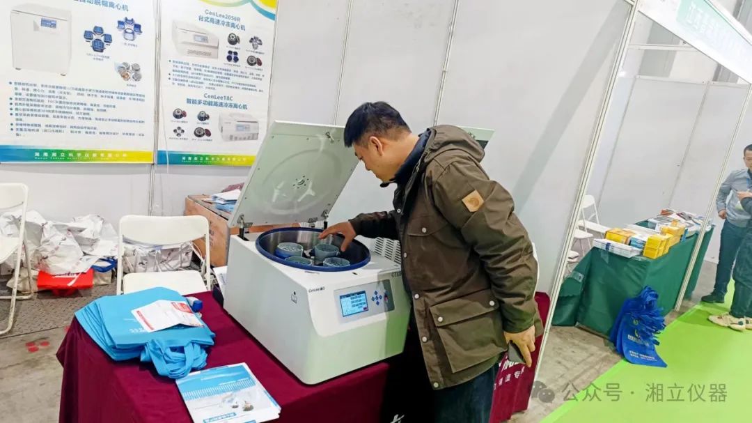 展会现场,湘立仪器的工作人员热情地向参观者介绍产品的特点和优势。他们专业的讲解和耐心的解答,让观众对湘立仪器的离心机有了更深入的了解。