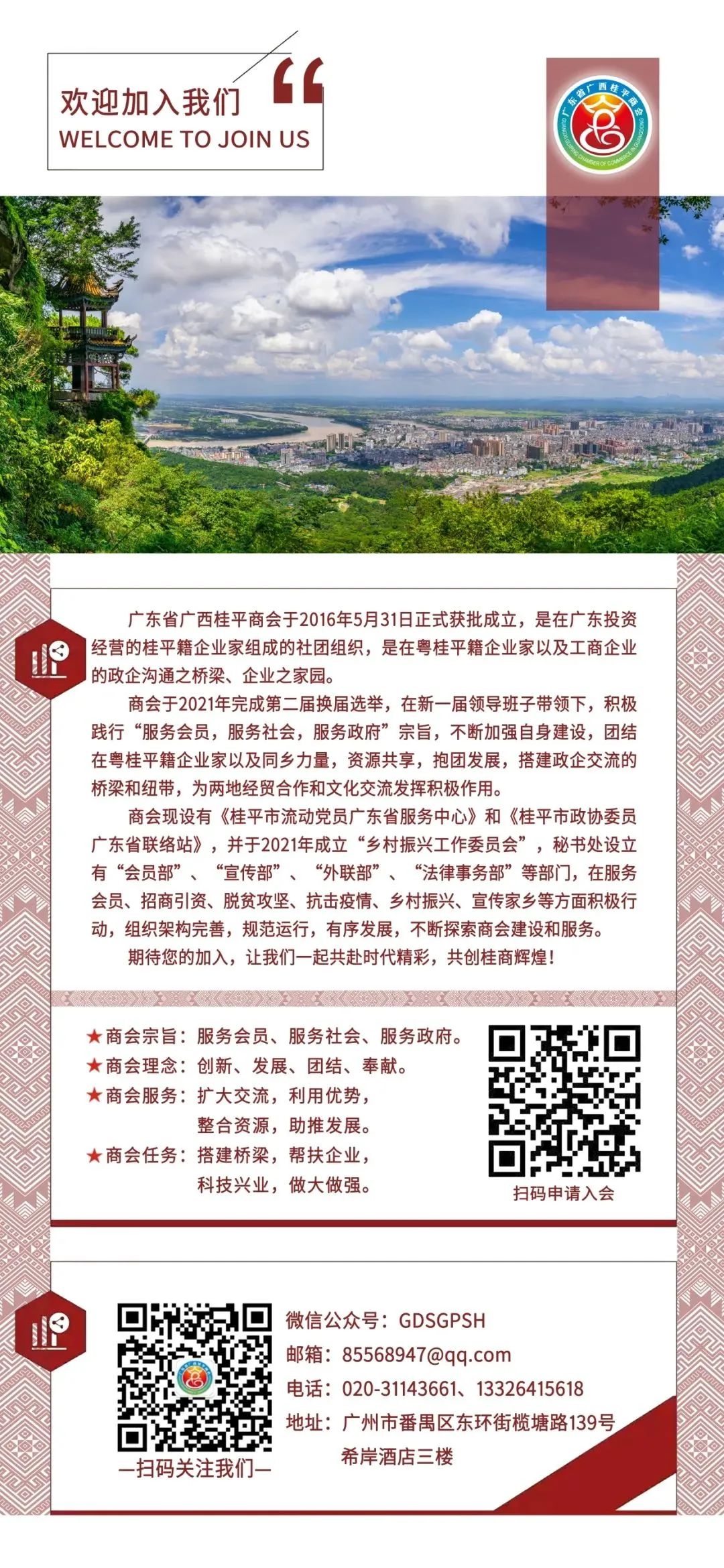 3月26日下午,桂平市政协副主席王锦芳,市政协副主席、党组成员何雁等一行10人到广东省广西桂平商会与部分住粤政协委员座谈交流,此次座谈旨在加强政商互动,共谋招商引资、家乡建设及委员企业发展等事宜。广州市广西桂平商会会长、我会副会长黄良柱,市政协委员、我会副会长陆桂雄、韦东奎等出席座谈会。会议由市政协委员、我会秘书长卢坚主持。