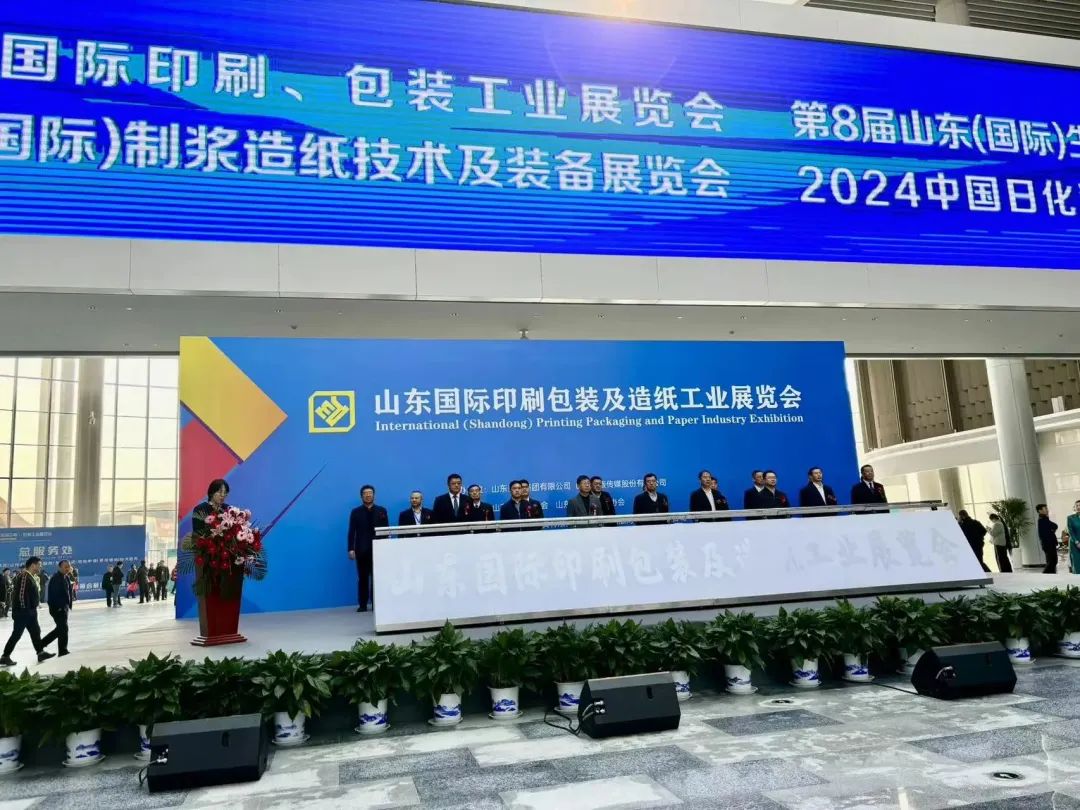本届展会是山东省工业和信息化厅2024年“新轻纺 享生活”现代轻工纺织“创美品 促升级”活动。出席开幕式的主要领导嘉宾有:中国造纸协会理事长赵伟,山东出版集团有限公司党委委员、董事,山东出版传媒股份有限公司党委委员、董事、总经理申维龙,齐鲁工业大学副校长、山东造纸学会理事长刘玉,中共山东省委宣传部印刷发行管理处处长盛利,山东省工业和信息化厅轻工纺织产业副处长纪建富,山东省印刷协会理事长、山东出版集团总经理助理、山东出版传媒股份有限公司监事会主席王长春,山东省造纸行业协会会长、华泰集团董事局主席李晓亮,山东省造纸行业协会专职副会长赵振东,山东晨鸣纸业集团股份有限公司副总裁李峰,山东太阳纸业股份有限公司副总经理陈昭军,河南江河纸业集团有限公司董事长姜博恩,德州泰鼎新材董事长、山东省造纸行业协会副会长王连水,山东金蔡伦集团董事长、山东省造纸行业协会副会长陈立仁,亚太森博(山东)浆纸有限公司浆销售总监迟立新,中冶纸业银河有限公司党委书记、执行董事张华东,东顺(山东)浆纸集团有限公司总经理陈树法,以及江苏、浙江、福建、湖北、河北、四川、河南、山西等省份造纸协会的负责人,部分造纸、装备企业负责人和参展商出席开幕式。王长春理事长代表印刷行业致辞,李晓亮会长代表造纸行业致辞,赵伟理事长、申维龙总经理、刘玉校长、盛利处长、纪建富副处长、王长春理事长、李晓亮主席、赵振东会长共同启动开幕,山东出版传媒股份有限公司副总经理兼董事会秘书薛严丽主持开幕式。