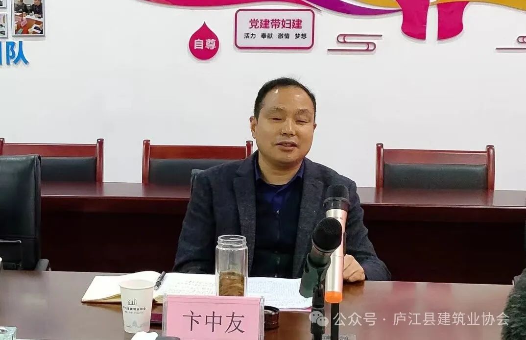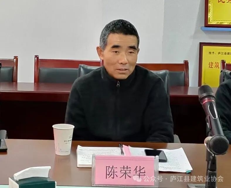 合肥市城乡建设局二级调研员陈荣华,无为市建筑产业协会党支部书记汪国祥、支部副书记王长庆、执行会长魏贤荣、秘书长傅万滨、办公室主任夏章萍,庐江县住建局副局长卞中友、庐江县住建局建管科长赵刚、庐江县建筑业协会会长马发飞、秘书长夏明武等有关人员参加座谈会。交流会上,卞中友副局长首先致辞,代表庐江县住建局、庐江县建筑业协会欢迎合肥市城乡建设局、无为市建筑产业协会领导一行到来;马发飞会长首先向来宾介绍了我会组织架构、工作制度、会员情况、工作职能及工作推进方法,并结合行业调研、评优评先、行业协调等工作,详细介绍了协会在党组织建设、社会担当及自身建设方面的经验做法。座谈会上,双方围绕协会结构体系、制度机制建设、职能任务履行等,进行了深入广泛的探讨和交流,并达成携手合作、互动交流的共识。