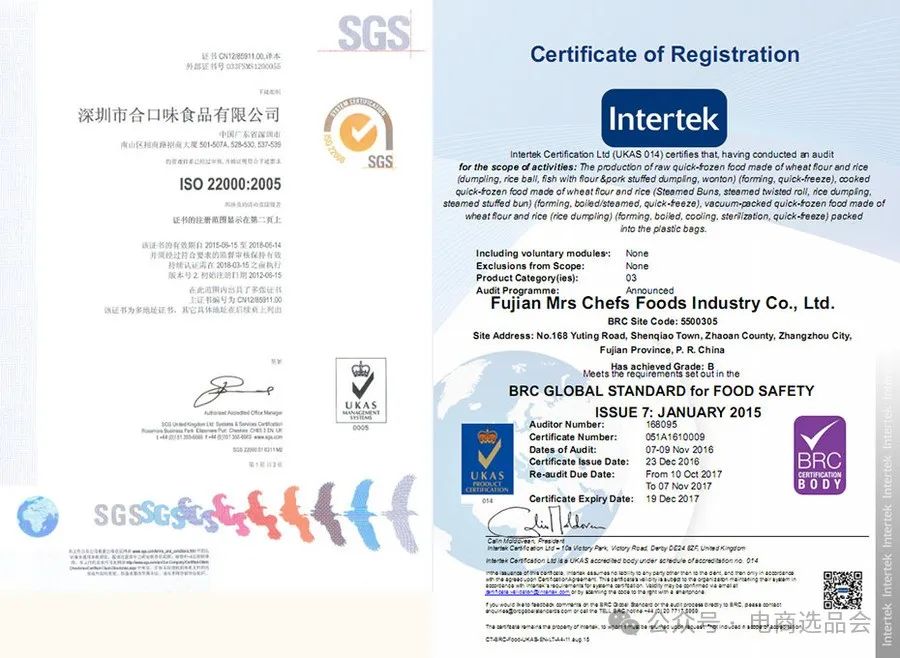 食品行业权威双认证企业:瑞士SGS ISO 22000:2005食品安全管理体系认证、英国零售商协会BRC认证