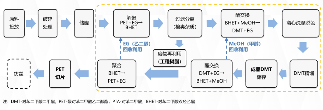图5:乙二醇醇解-甲醇酯交换化学循环再生工艺流程