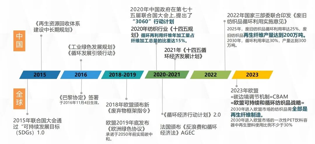 图2:国内外纺织品循环再生政策发展历程