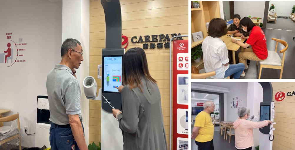 在社区养老店铺的后期运营中,康姆福德通过日常维护、方案策划、产品升级三大方面给予店铺持续化运营能力支持。包括人员培训进阶、协助活动策划、系统维护、促销活动策划、复购活动策划、适老设备订单处理、系统升级、设备维护升级等标准化运营服务。在监管方面,通过穿戴可视化设备和智慧系统,实时监控服务输出的正规性和合理性,帮助店铺打造口碑。