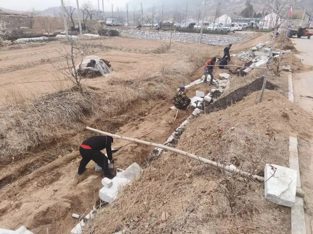 该项目涉及丁家楼子村、甲级庄村等,目前正在加紧推动路边绿化带挡土墙砌筑,绿化带整形及苗木栽植等工作。