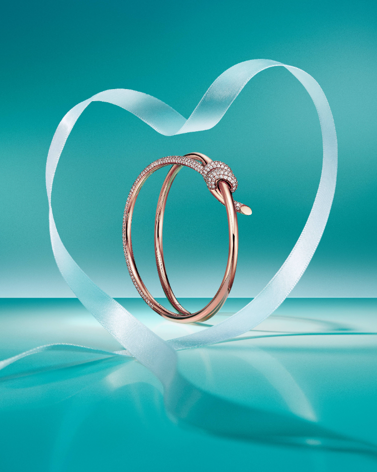 Tiffany Knot系列18K玫瑰金镶钻双行手镯