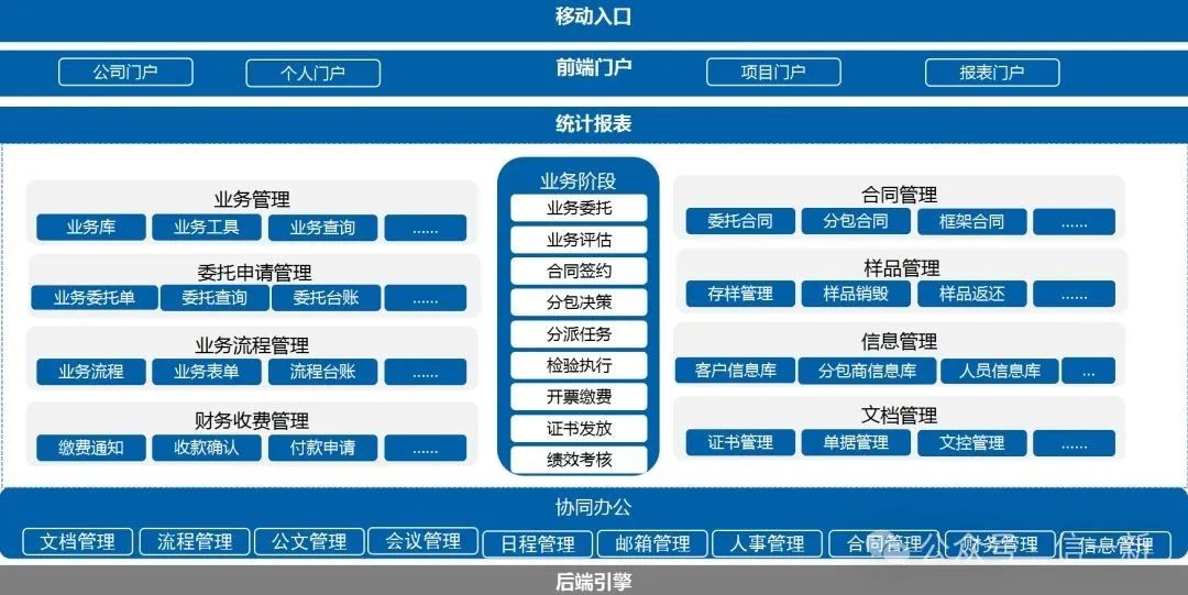 泛微检测业务全过程管理涵盖业务委托、签约、执行、收款、考核在内的9大流程。