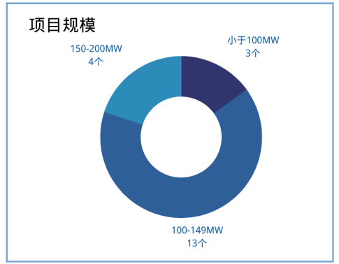 2022年最新农光/渔光/林光互补项目装机容量从20MW-200MW不等,项目规模多数集中在100MW左右。