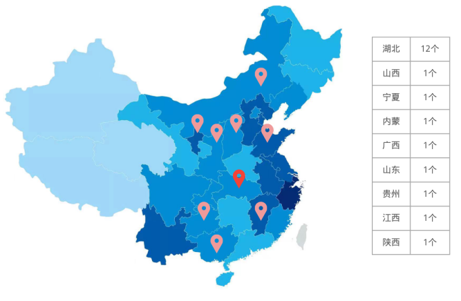 经与全国太阳辐射总量区域分布表对比,20个项目在太阳能资源丰富带至一般带均有分布,其中位于湖北省的项目数量最多,达12个。
