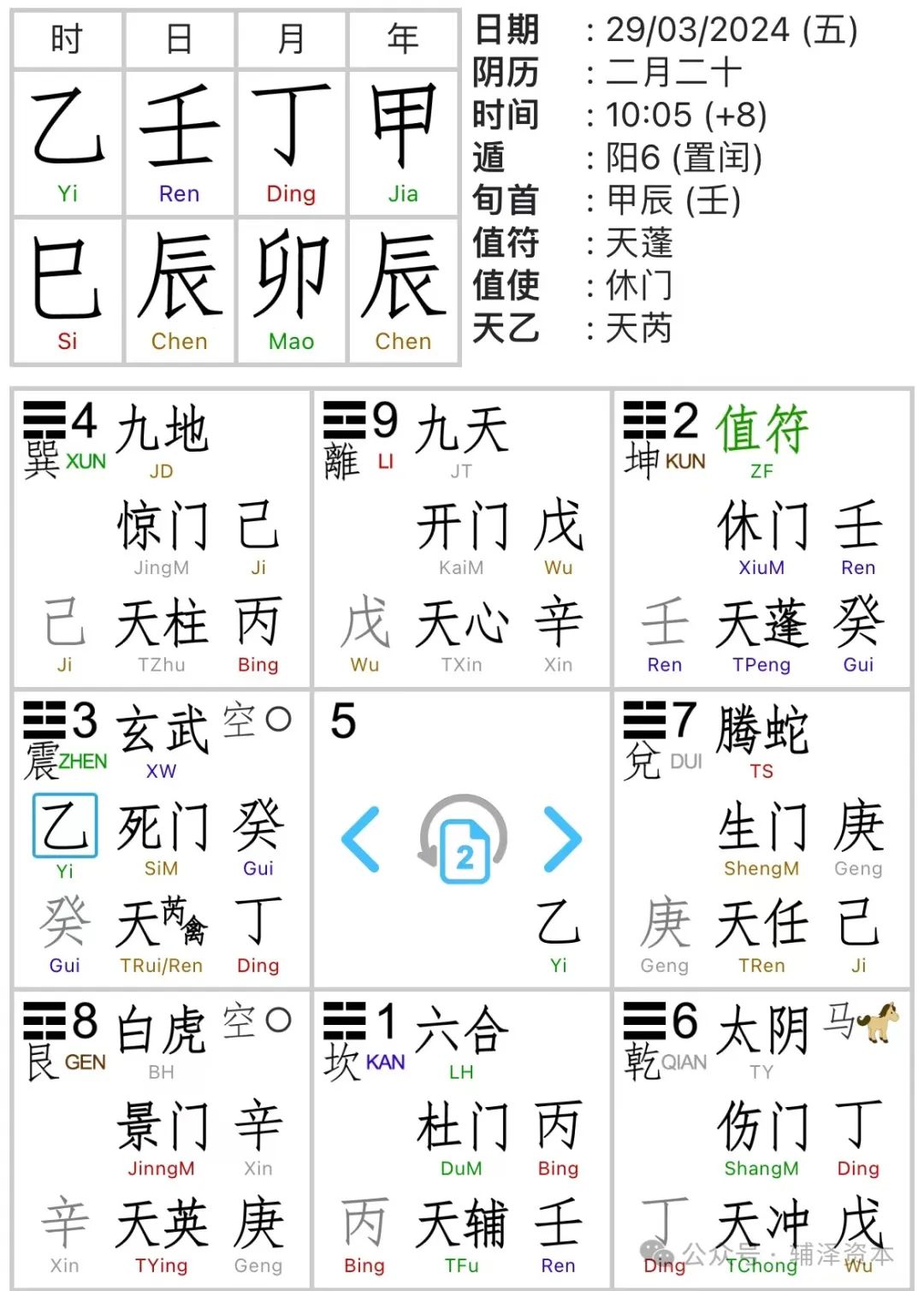 原油用神取休门,休门临坤二宫、休门又为值使,与值符落同一宫为天显时格,利于原油涨势,天盘壬水、地盘癸水、更是五行相旺,随被坤二宫所克,又临天蓬星,也是属水但吉格、值符知识同宫又不见空亡,虽不占地利、但占尽天时格局与神助,由此可断,原油价格上涨。