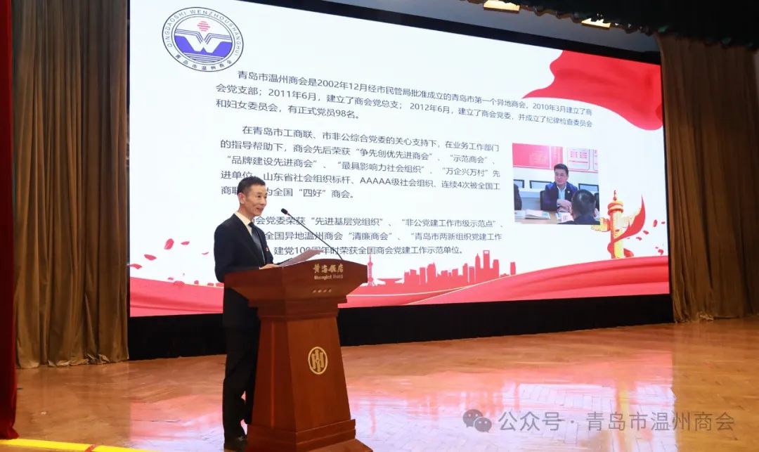青岛市温州商会执行会长李祥国、党委书记徐海东、执行秘书长于鹏参加会议。