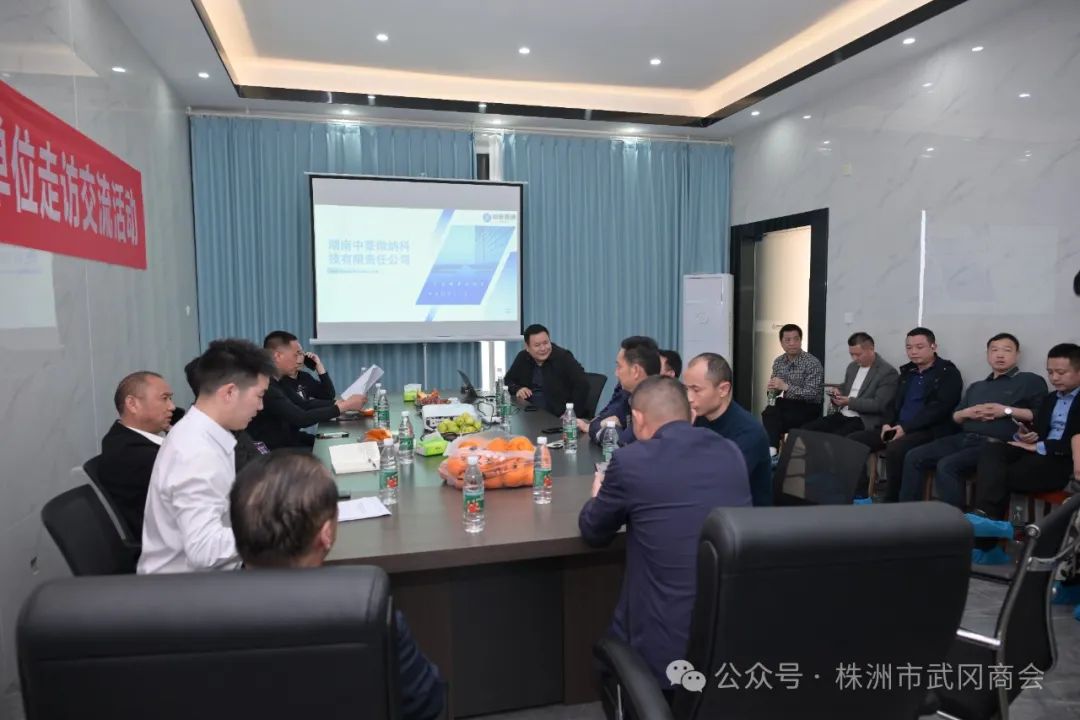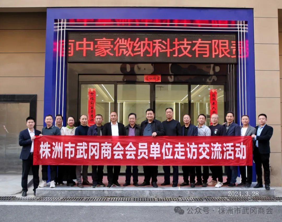 3月28日下午,株洲市武冈商会会长团队在姜少伟会长、党支部书记周前文带领下一起赴副会长单位——湖南中豪微纳科技有限责任公司走访调研,中豪微纳科技股份有限公司董事会长林枫热情接待与陪同。