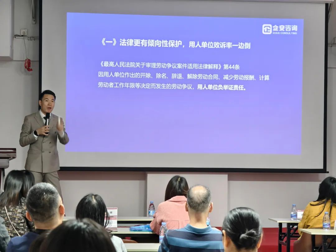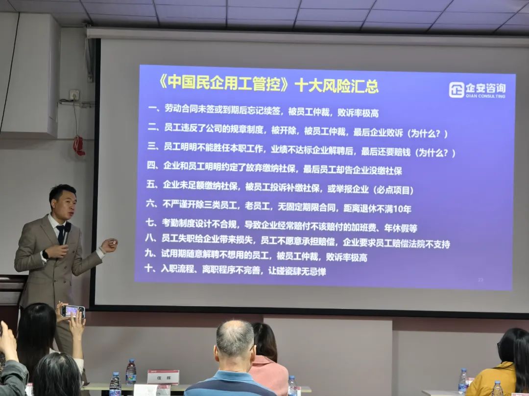 2024年3月20日,邀请企安法务的专家举办了这次《企业用工风险管控》培训活动,本次培训受到了40多家会员企业的热烈欢迎和积极参与。