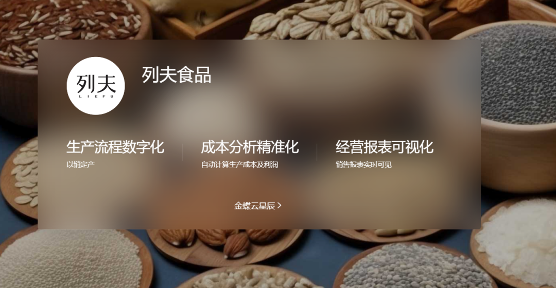 金蝶云·星辰不仅帮助列夫食品解决了生产管理和经销商订货两大最核心的管理难题,还集成了第三方报销系统,全方位整合了企业的业务流程。