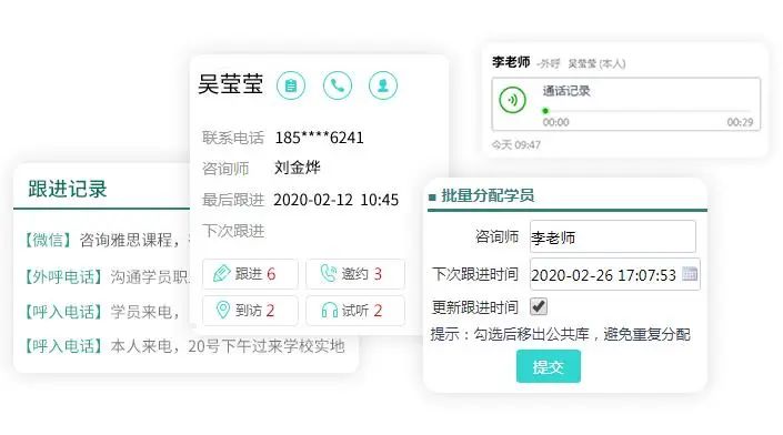 产品包括PC端软件和移动端APP,方便市场和课程顾问随时进行客户登记与沟通。通过为每位登记客户创建永久电子档案,我们能够记录销售沟通的详细轨迹。这种管理方式不仅便于有效跟踪客户进展,还能减少因人员变动带来的影响,确保客户信息的连续性和完整性。无论是PC端还是移动端,我们的产品都致力于提升销售团队的效率和客户满意度。
