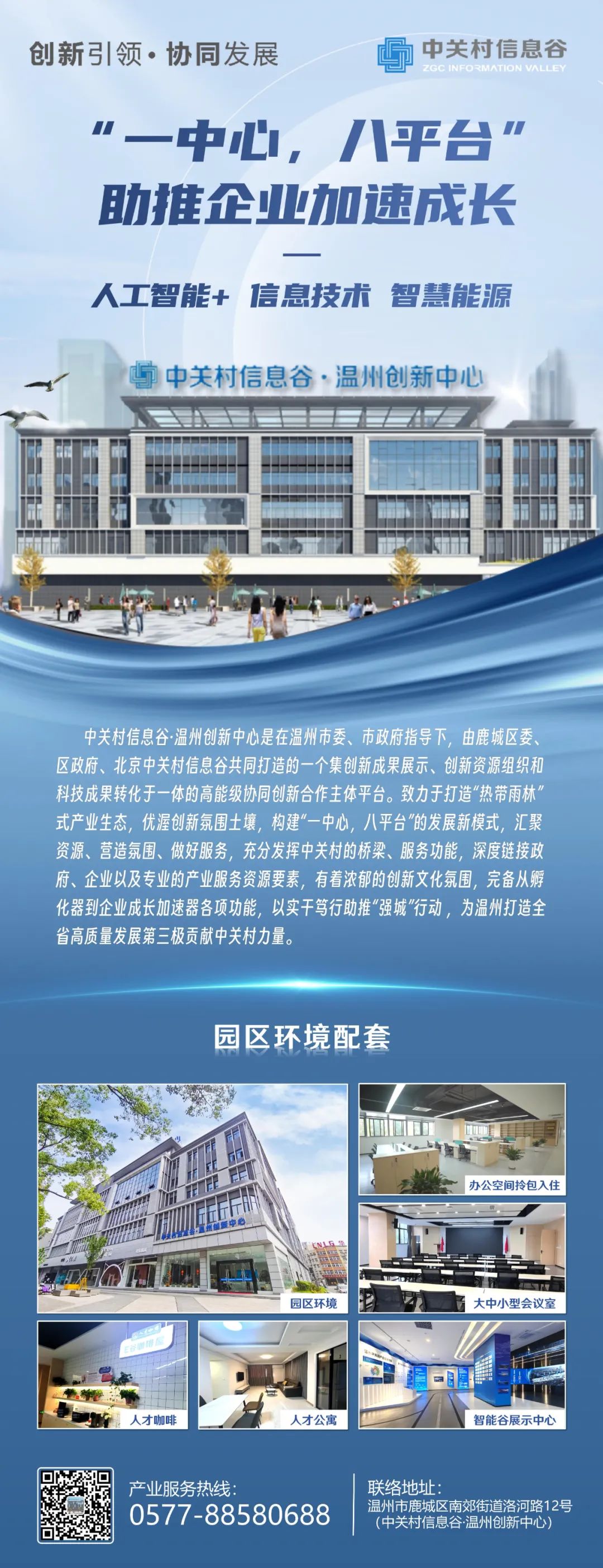 在创新中心展厅,青年代表详细了解温州中关村信息谷在人工智能产业聚集、企业培育及服务体系搭建等方面的具体举措及阶段性成效,和在“人工智能+”、信息技术、智慧能源等领域招引培育⼯作。