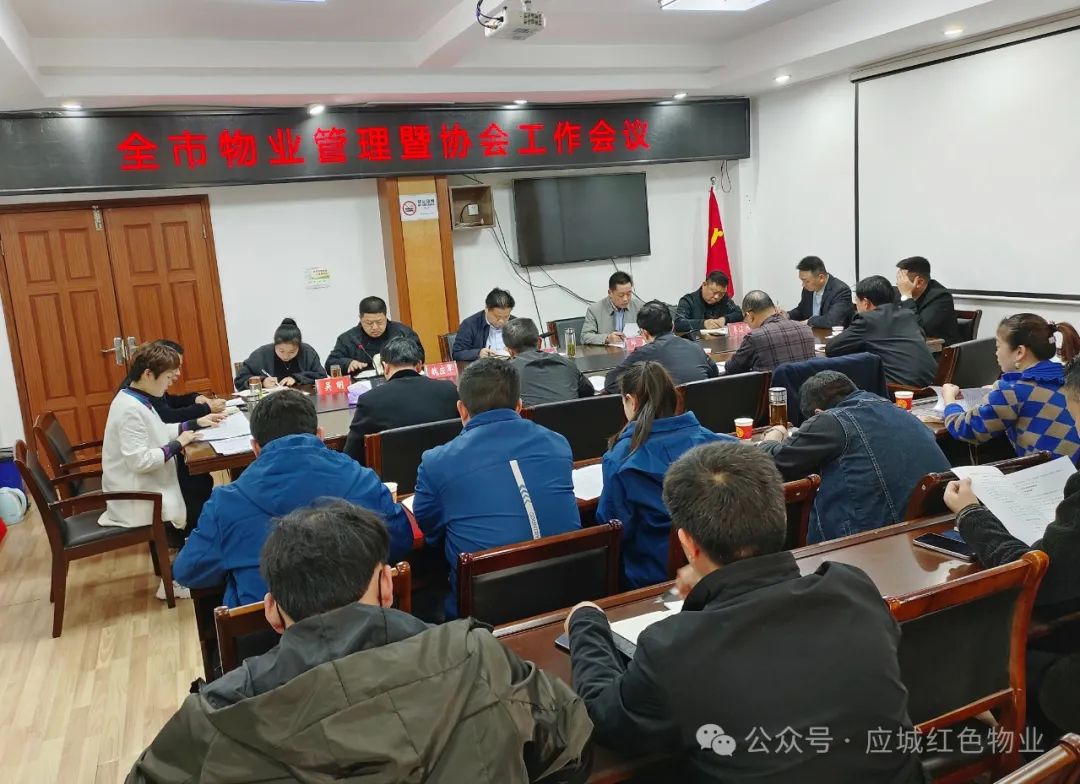 会议由住建局物业分管负责人邱野主持 ,应城物业行业协会会长李辽洲作年度工作报告,物业股、行业协对近期工作做具体安排。物业行业党委、行业协会、全市物业企业负责人参加会议。