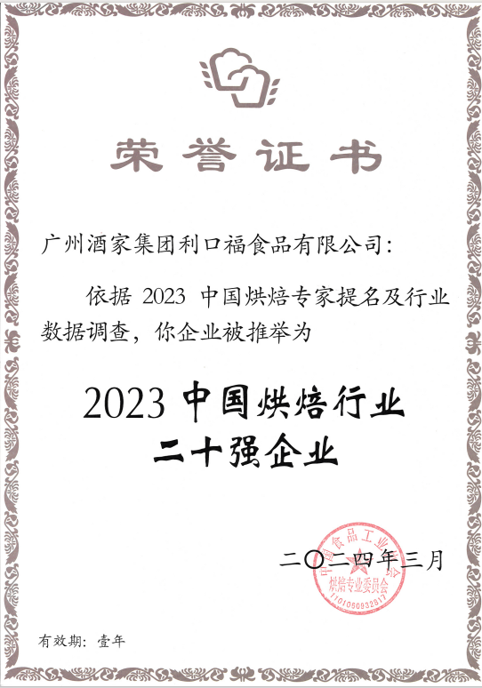 近日,由中国食品工业协会承办的2024第十四届中国烘焙年会在天津举行,会上发布了2023年中国烘焙行业企业榜单,广州酒家集团利口福公司凭借强大的生产实力、创新能力和品牌影响力,获评“2023中国烘焙行业二十强企业”。