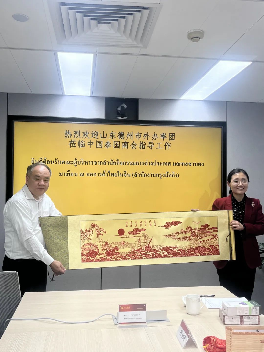 2023年3月25日下午,山东德州外事办代表团莅临中国泰国商会北京办公室党组书记、主任张方瑞女士率代表团访问中国泰国商会北京办公室。商会北京办公室主任李晖主任代表商会迎接代表团一行。