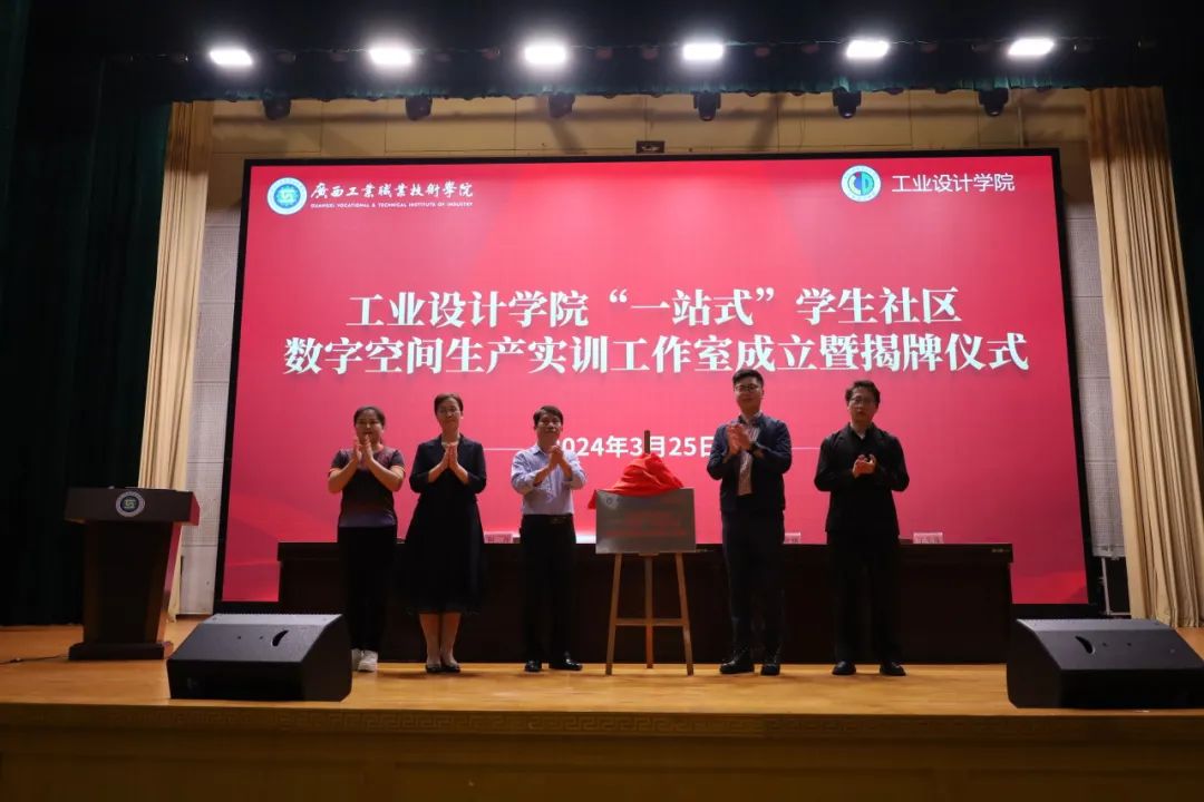 3月25日,光辉城市(重庆)科技有限公司与广西工业职业技术学院工业设计学院在综合大礼堂联合举行“一站式”学生社区数字空间生产实训工作室成立暨揭牌仪式。校学生处副处长陈炬、工业设计学院院长何萍、光辉城市(重庆)科技有限公司教育事业部运营总监崔世朋、高级技术经理王朱珠、工业设计学院学工办辅导员代表、2022级建筑室内设计、环境艺术设计专业学生代表参加活动,学院党总支副书记尹丽主持活动。