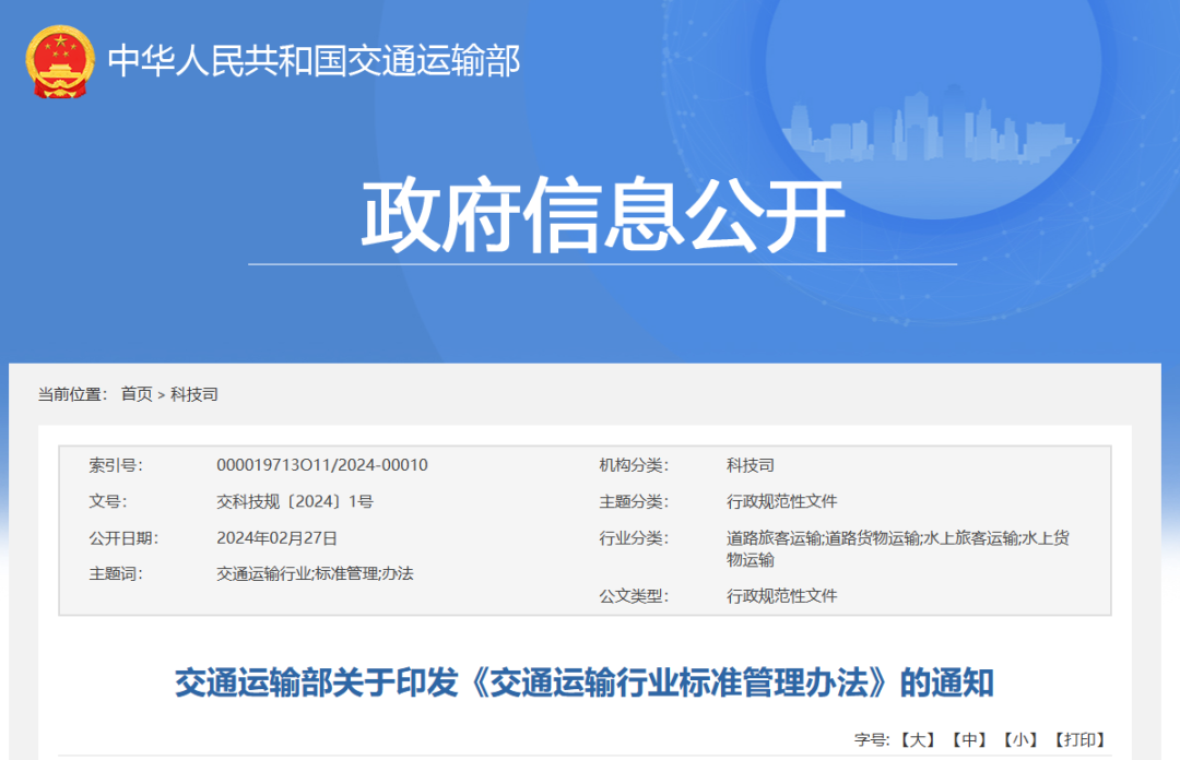交通运输部应当通过标准化信息系统推动行业标准免费向社会公开。