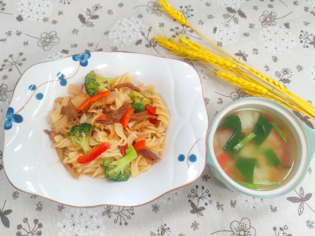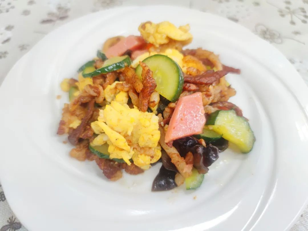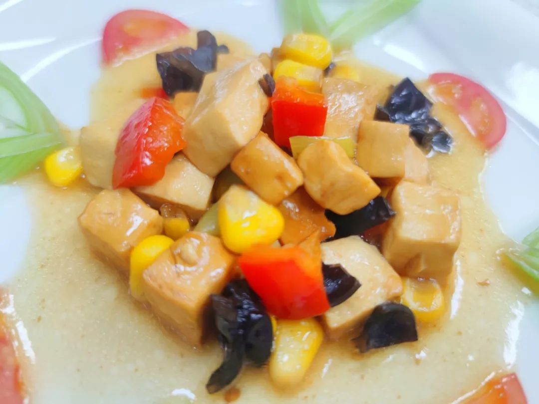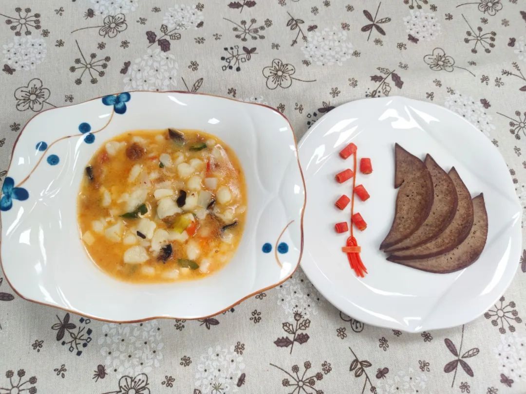 五彩焖饭 蜜汁鸡腿 冬瓜虾皮汤
