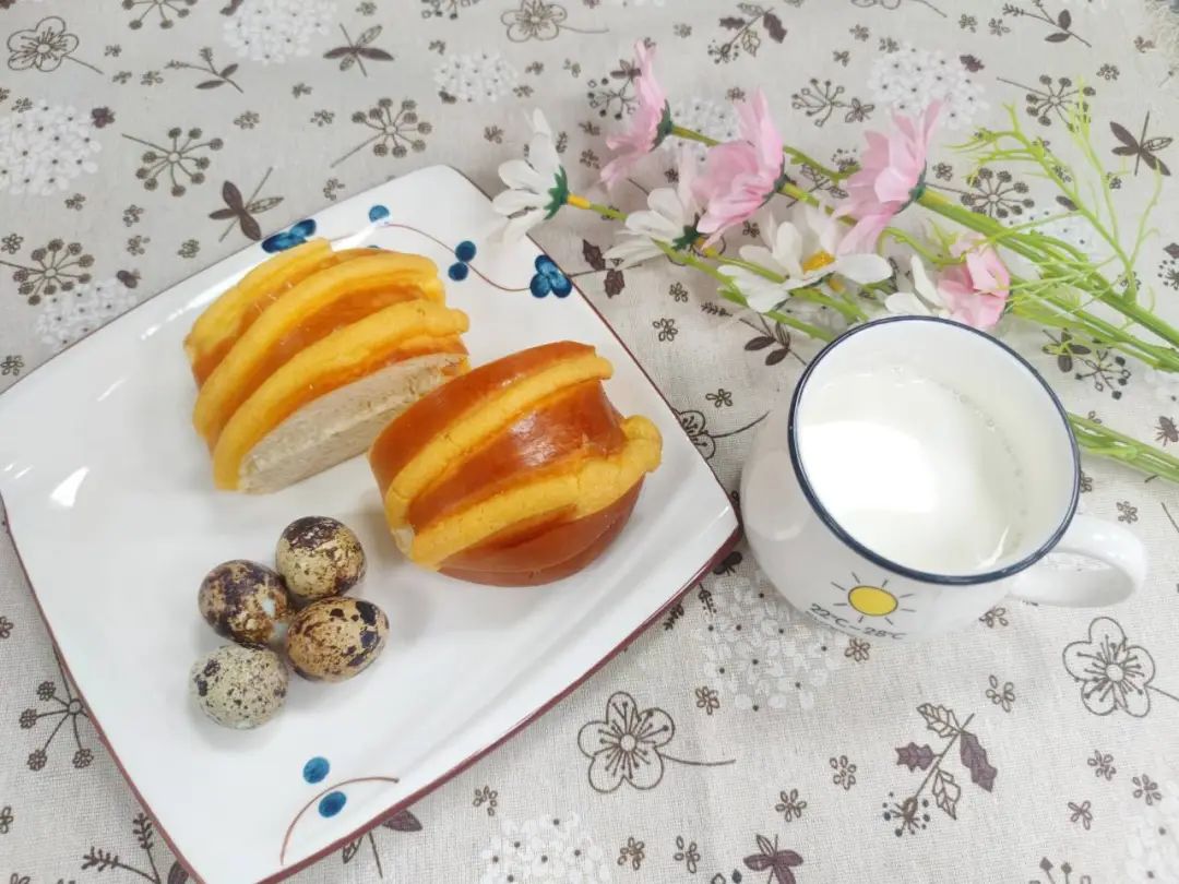 纯牛奶 奶油毛毛虫面包 鹌鹑蛋