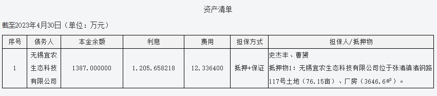债权现状:上述债权资产的权利人为宜兴市金发企业管理有限公司