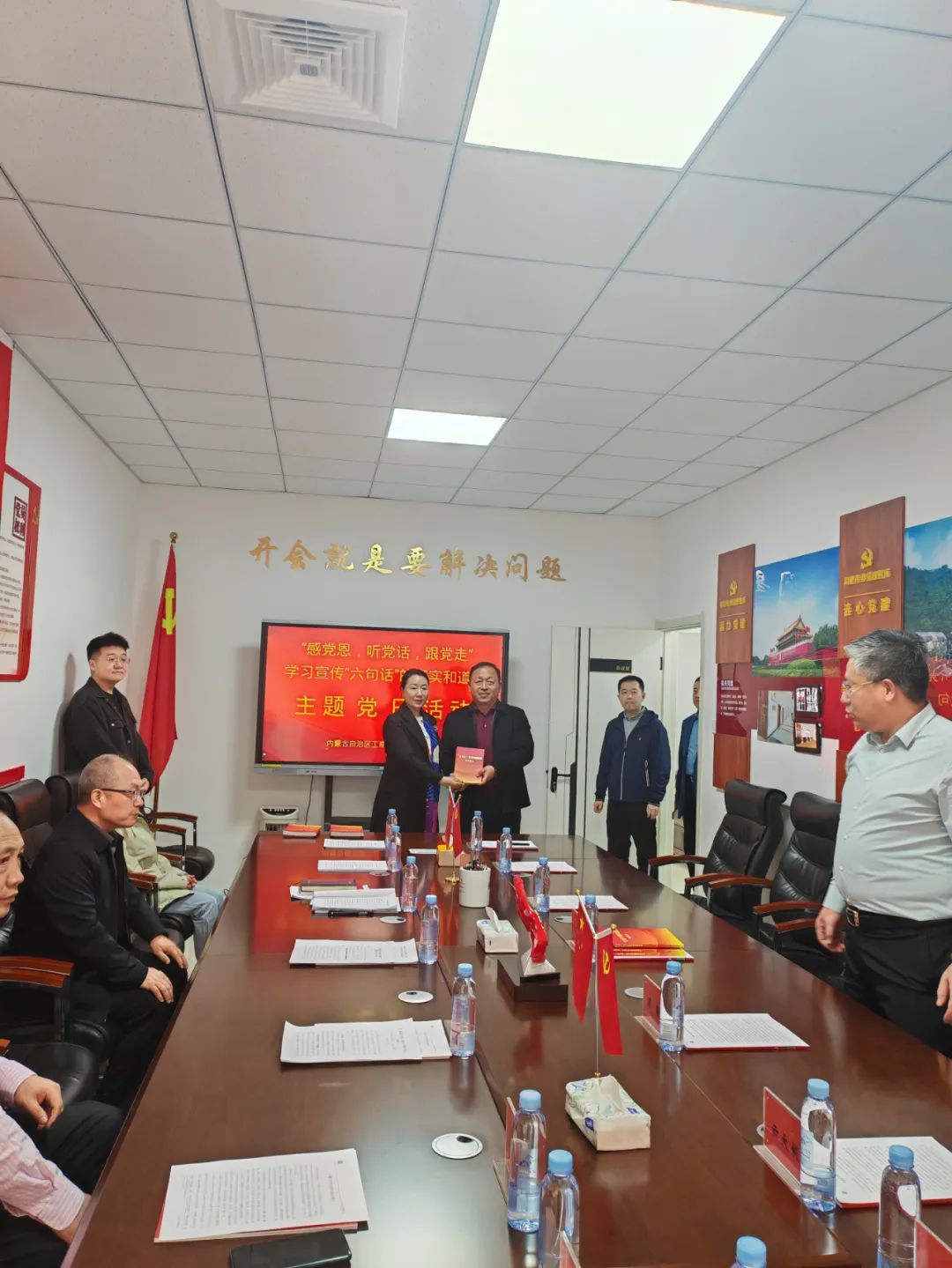 活动组织党员参观金桥双创示范区联合党委党建阵地和内蒙古企业管理咨询协会红色文化展厅,自治区工商联会员部党支部向各商协会党支部赠送“六句话”的事实和道理相关书籍,会员部党支部书记开展“六句话”的事实和道理专题宣讲,各商协会党支部代表围绕商会党建、会建工作作交流发言,表示将认真抓好党建工作,推动党建与会建深度融合,充分发挥基层党组织战斗堡垒作用。