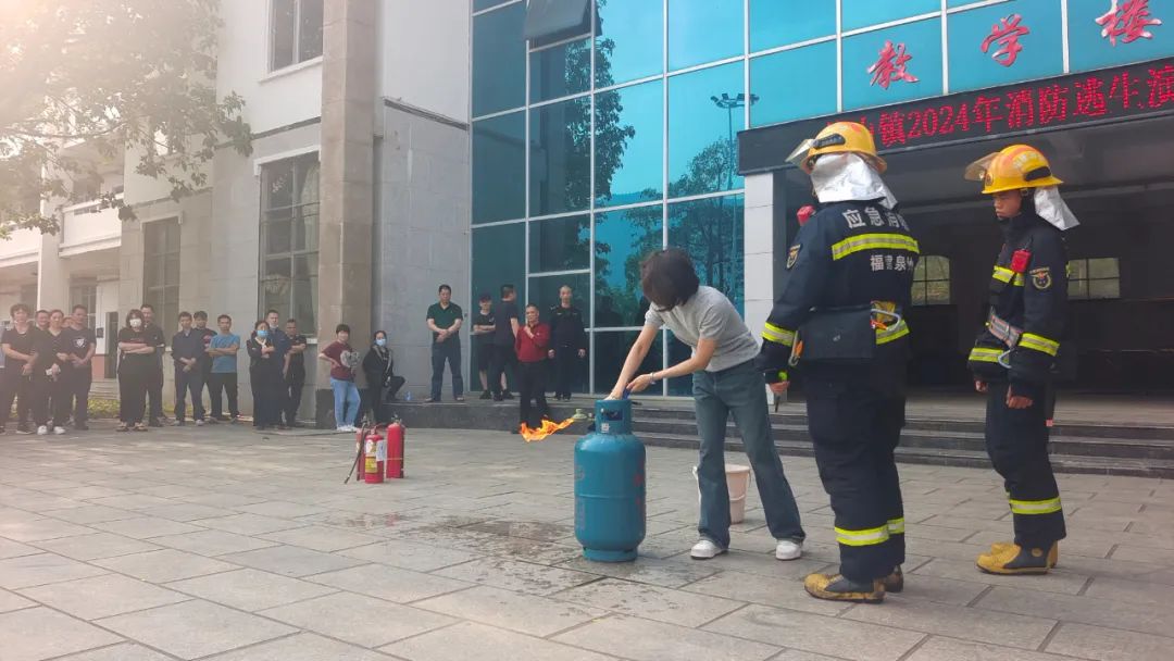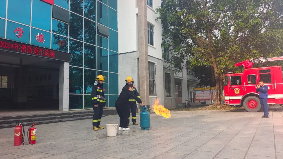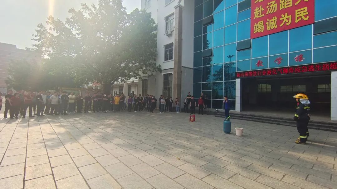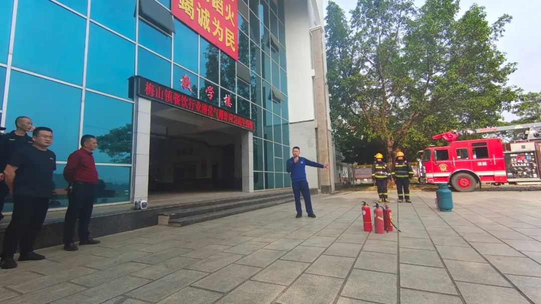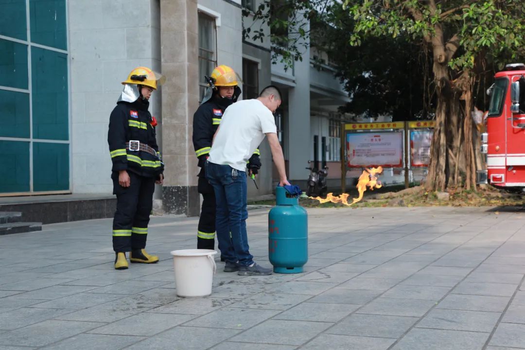 在活动现场,梅山消防救援站工作人员详细讲解液化气着火的处理方式,现场演示如何扑灭液化气瓶初起火灾,并邀请学员亲自尝试灭火,同时,通过实物展示让学员了解液化气瓶各类连接设备与燃气具,进一步增强学员的燃气安全意识,提高学员面对燃气突发事件的应对和自救能力。