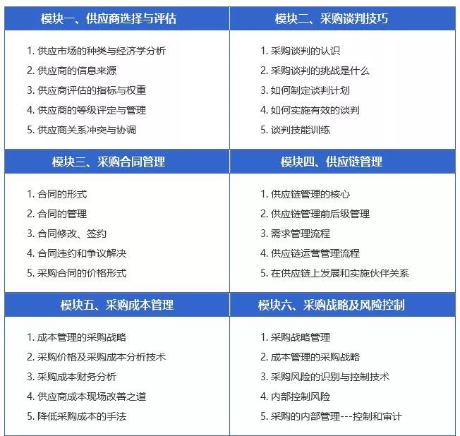 增值福利:培训合格可获得亚太采购商学院"首席供应官"荣誉称号和成为采购界经理人俱乐部成员,免费参加采购界数十场专场论坛峰会和免费使用采购界线上数据库,并和名企高管成为圈友,共享知识智慧和人脉资源。