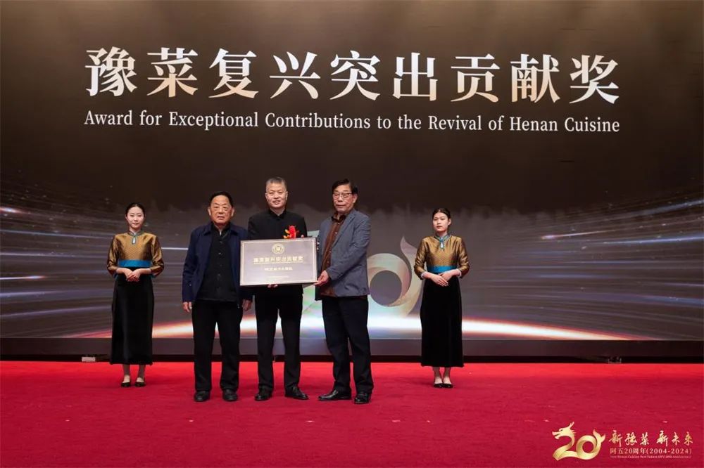 同时,河南省餐饮与住宿行业协会会长张海林特别为阿五餐饮颁发了“豫菜复兴突出贡献奖”,以表彰其在过去20年中锐意进取,创新发展的杰出成就。
