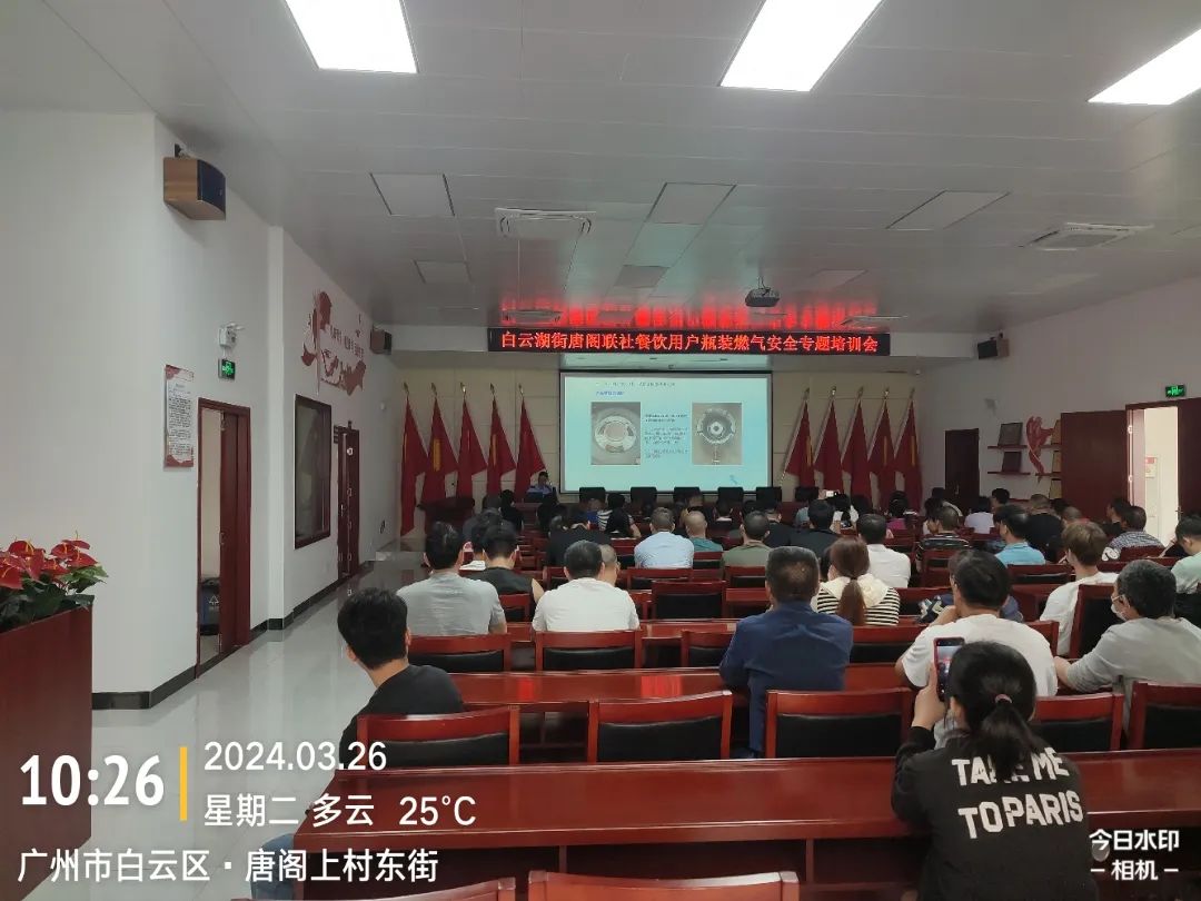 为全面提升城镇使用燃气的餐饮企业主要负责人安全风险防控意识和安全管理能力,坚决防范重特大事故发生,3月26日至3月28日,白云湖街执法办到龙湖联社、唐阁联社、大朗联社、夏茅联社、大冈联社、环滘联社组织召开餐饮企业燃气安全管理工作培训会议。白云区城管局督导员,白云湖街执法队、联社工作人员、辖内餐饮企业负责人参加。