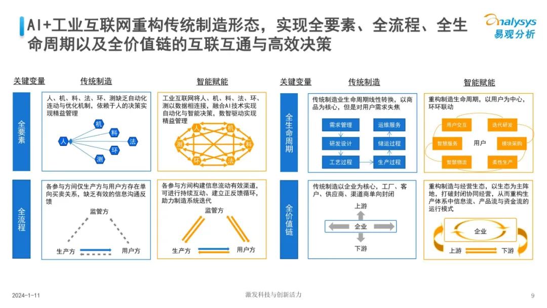 - 通过AI+工业互联网重构传统制造形态,实现全要素、全流程、全生命周期以及全价值链的互联互通与高效决策。