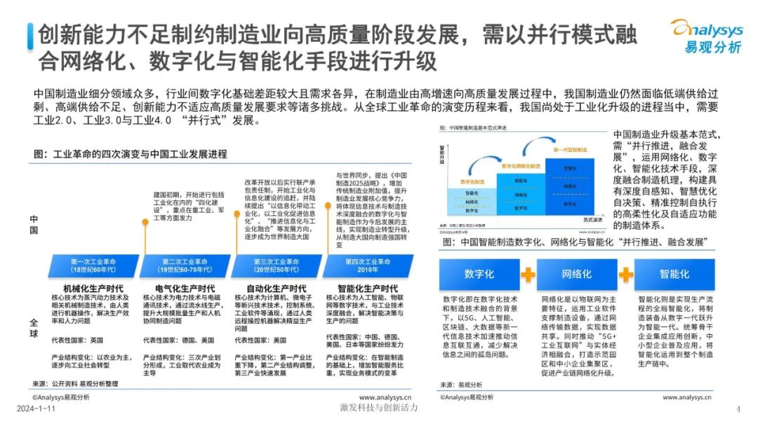 - 制造业面临高端制造回流、中低端制造转移等压力,需要通过数字化、网络化与智能化手段进行升级。