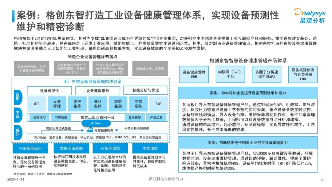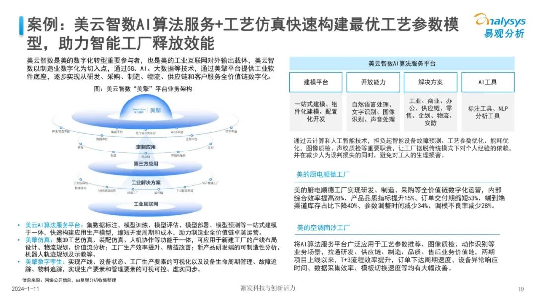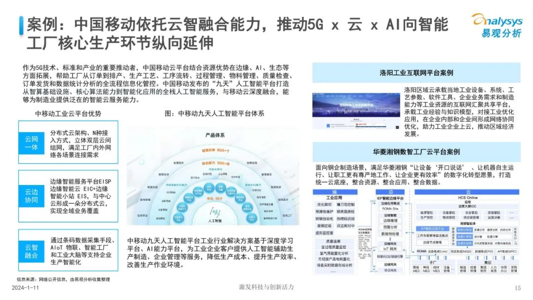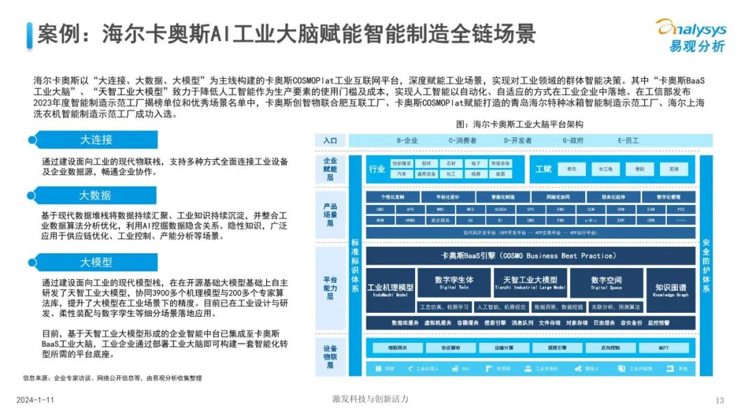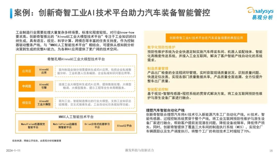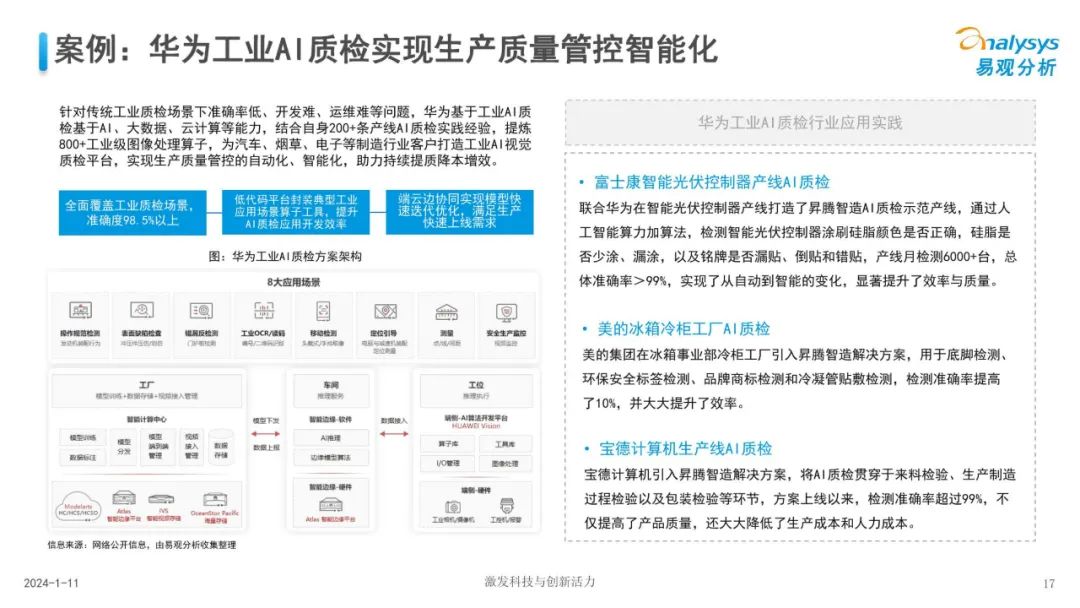 报告中还包含了多个案例分析,如海尔卡奥斯AI工业大脑、中国移动云平台、思谋科技工业互联网平台、华为工业AI质检、创新奇智工业AI技术平台、美云智数AI算法服务、格创东智设备健康管理等,展示了AI技术在制造业中的具体应用和成效。