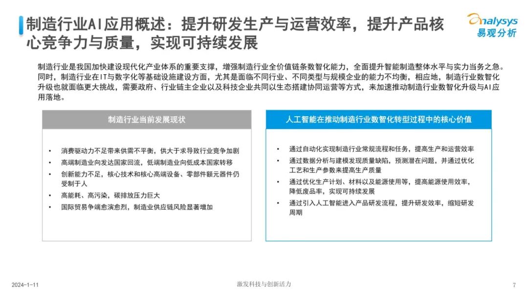 - 制造业AI应用面临消费驱动力不足、高端制造业回流、创新能力不足等挑战。