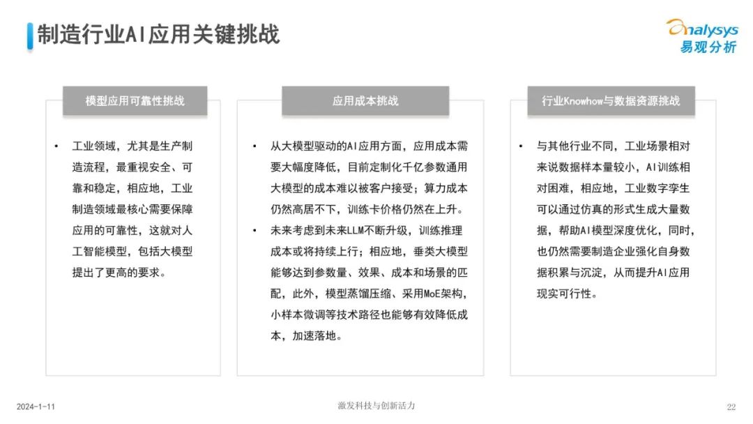 - 面临模型应用可靠性、应用成本、行业Knowhow与数据资源等挑战。
