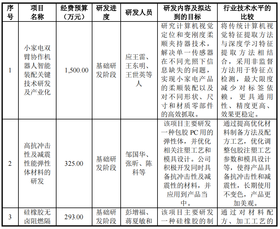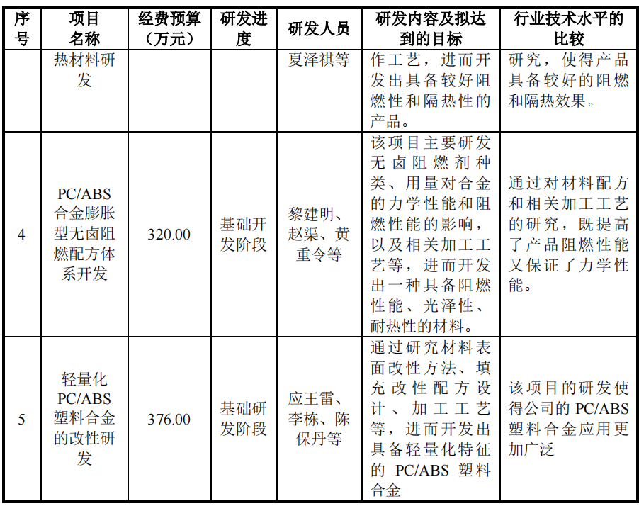 利安科技自诉自身优势在于“模塑一体化”,其中在模具型腔加工精度达到±0.001mm水平,使用寿命超150万次;材料开发方面,已有高韧性无卤阻燃材料、耐酸碱腐蚀等材料,并积极开发PCR 再生塑料,同时在研高抗冲击性及减震性能弹性体材料、轻量化PC/ABS塑料合金的改性、PC/ABS合金膨胀型无卤阻燃配方体系等技术。